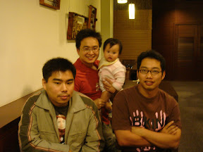 星期五晚上近半夜才回到楊咩外祖母家 果然不愧是公主 剛回到家 臭皮舅舅出來迎接 阿公阿嬤也睡好一覺起來跟楊咩培養感情啊! 星期六一早六點喝ㄋㄟㄋㄟ起來活動一下 阿公就再跟楊咩問安了 果然是明星啊~~媽咪一早趕行程佛光山-烏山頭-鹽水 下午就帶著楊咩去台南找哞哞哞叔叔吃飯